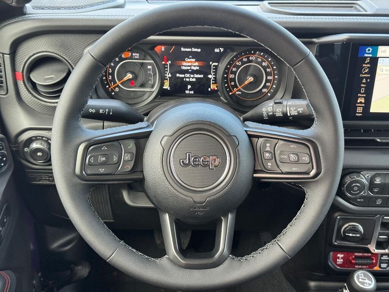 Convenience Group: Remote Start System; Universal Garage Door Opener; Heated Front Seats; Heated Steering Wheel Safety Group: Auto High Beam Headlamp Control; Blind Spot & Cross Path Detection; ParkSense Rear Park Assist System Technology Group: Google Android Auto; SiriusXM Radio Service; 12.3" Touchscreen Display; Integrated Off-Road Camera; HD Radio; Integrated Center Stack Radio; Rear View Auto Dim Mirror; For More Info Call 800-643-2112; Integrated Voice Command W/Bluetooth; Connectivity - US/Canada; Uconnect 5 Nav W/12.3" Display; GPS Navigation; 4G LTE Wi-Fi Hot Spot; SiriusXM W/360L; Connected Travel & Traffic Services; Apple CarPlay Xtreme 35 Tire Package: LT315/70R17C 113/110S Tires; Wheel Flare Extensions; MOPAR Tire Relocation Kit; Anti-Lock 4-Wheel Disc Perf Brakes; 35" Tire Suspension; MOPAR Hinge-Gate Reinforcement; MOPAR Jack Spacer; 17" X 8" Machined Wheels W/Black Pockets; 4.56 Rear Axle Ratio; 6 250 lbs GVWR Quick Order Package 24R Rubicon Quick Order Package 23R Rubicon Nappa Leather Seats Black 3-Piece Hard Top Alpine Premium Audio System Reign MOPAR Hinge-Gate Reinforcement Body Color Rubicon Highline Flare MyFlexCare Service Plan MOPAR All-Weather Floor Mats