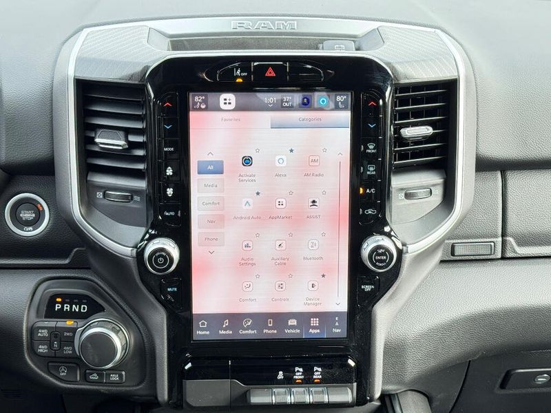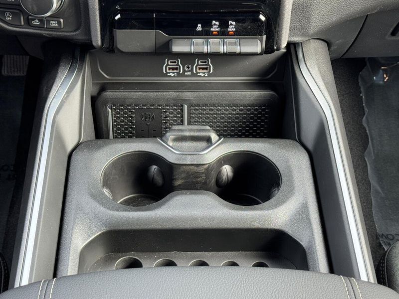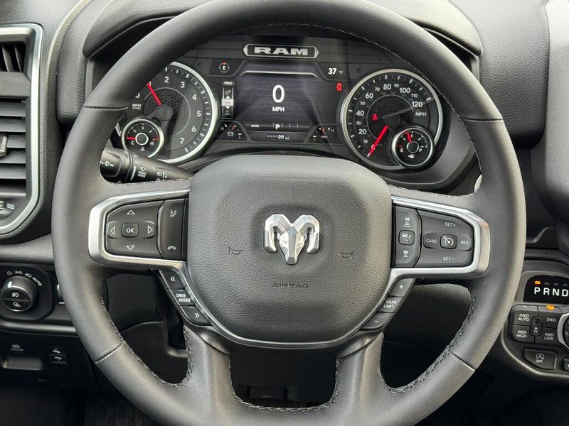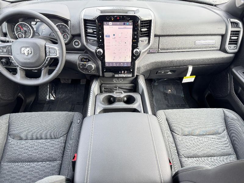 Big enough to tow or haul, the vehicle has the space, power and durability for anyone. This 2026 Ram 1500 has four wheel drive capabilities. Anti-lock brakes will help you stop in an emergency. This Ram 1500 has automated speed control that adjusts to maintain a safe following distance, enhancing highway driving convenience. The gas and brake pedals adjust allowing you to fine-tune them for personal fit and comfort. This unit comes equipped with Android Auto for seamless smartphone integration on the road. Apple CarPlay: Seamless smartphone integration for the Ram 1500 - stay connected and entertained on the go! The vehicle offers Automatic Climate Control for personalized comfort. The high efficiency automatic transmission shifts smoothly and allows you to relax while driving. See what's behind you with the back up camera on it. This unit has an elegant black exterior finish. Maintaining a stable interior temperature in this vehicle is easy with the climate control system. Easily set your speed in the Ram 1500 with a state of the art cruise control system. Increase or decrease velocity with the touch of a button. Electronic Stability Control is one of many advanced safety features on the vehicle. This 1/2 ton pickup has a V8, 5.7L high output engine. This unit's Forward Collision Warning system alerts the driver to potential front-end collisions, enhancing safety. The vehicle is equipped with a gasoline engine. Bluetooth technology is built into it, keeping your hands on the steering wheel and your focus on the road. Keep your hands warm all winter with a heated steering wheel in this 2026 Ram 1500 . The installed navigation system will keep you on the right path. An off-road package is installed on this model so you are ready for your four-wheeling best. The rear parking assist technology on the Ram 1500 will put you at ease when reversing. The system alerts you as you get closer to an obstruction. Start the vehicle from inside with remote start. It is equipped with the latest generation of XM/Sirius Radio.